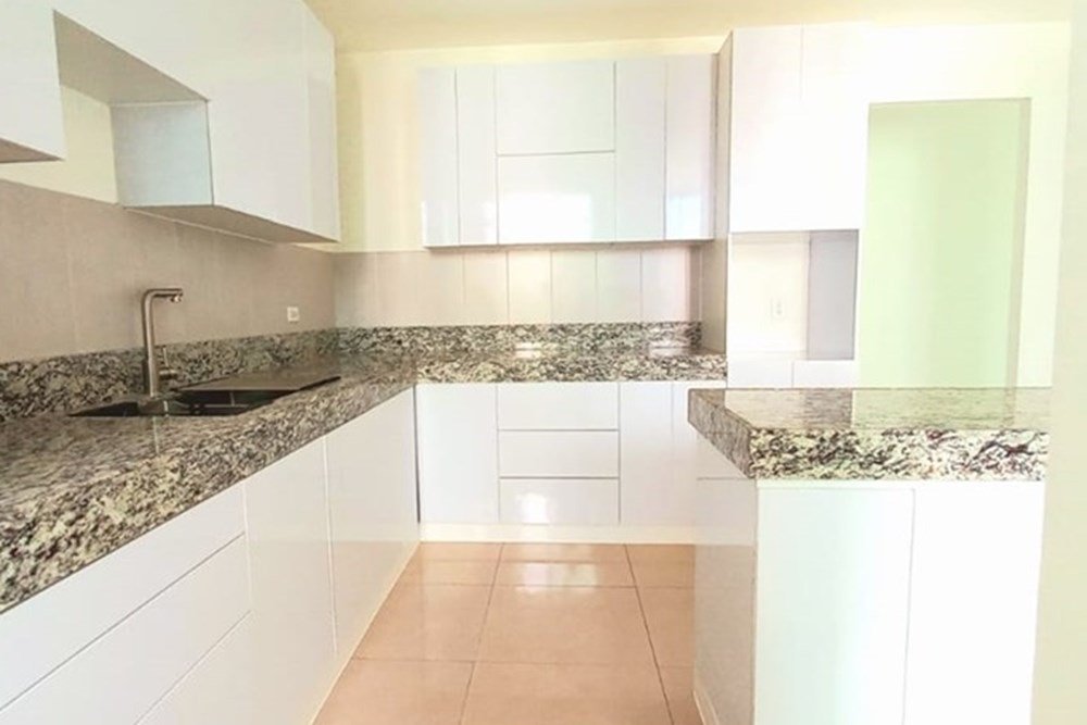La sala ofrece espacio para dos áreas de comedor, además de un comedor privado. La cocina, renovada en marzo, está equipada con modernos sobres de granito. El área de lavandería incluye un cuarto y baño de empleada.