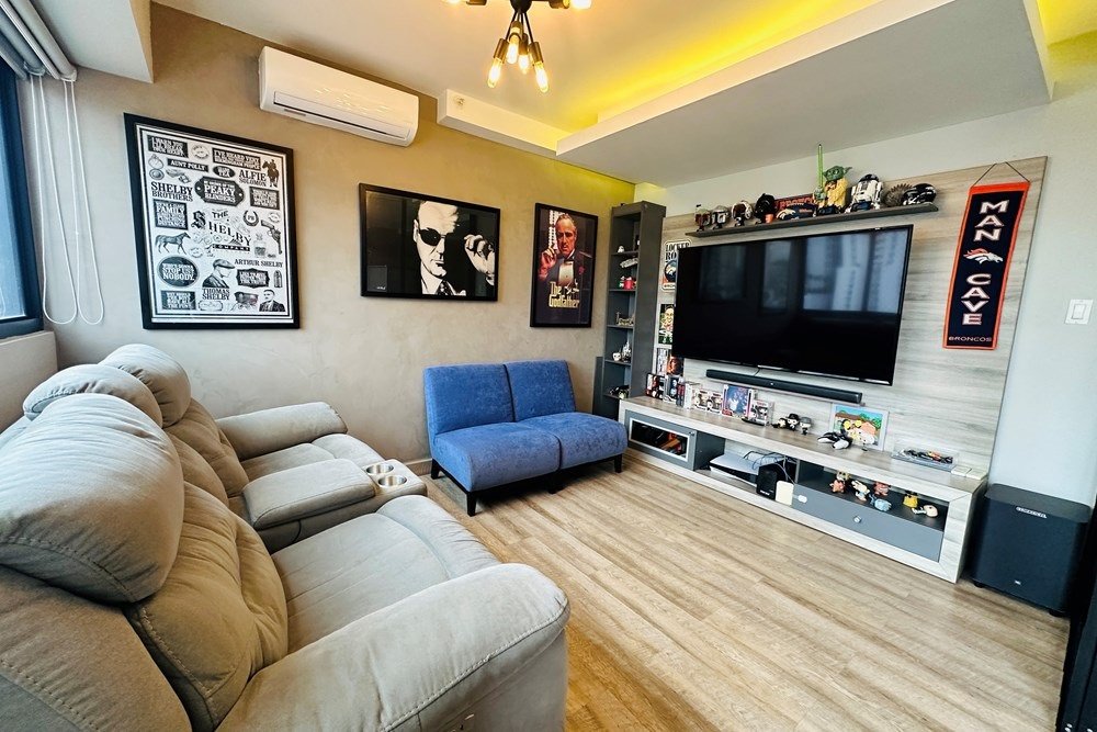 Un den versátil que puedes adaptar como oficina o sala de entretenimiento.