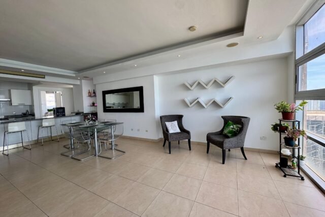 Vive con lujo y comodidad en uno de los edificios más prestigiosos de la Avenida Balboa, con una impresionante vista panorámica a la Bahía de Panamá y la Cinta Costera.